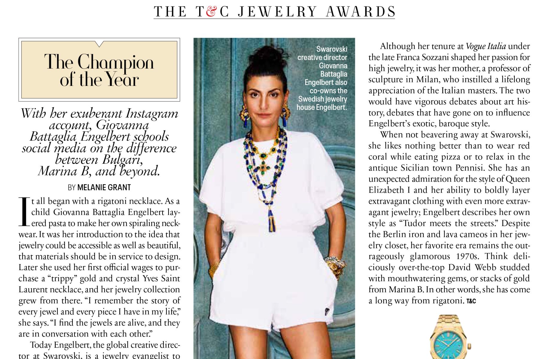 Written by Melanie Grant for Town & Country in May 2024 with the headline “The Jewelry Fan of the Year.”